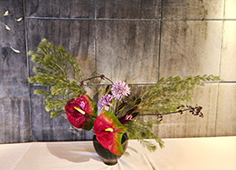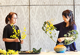 Hatsuike- 2020 New Year Celebration Lunch – Wednesday Janurary 8, 2020We did "Hatsuike" in Renka style, which was first adopted by the third Head Master, Hiroshi Teshigahara as a new way to create the group arrangement. In a large container or containers, each participant inserts a branch or a flower one after another. With the addition of new material, the arrangement will change the appearance. We all observe its changing aspect of floral arrangement and enjoy as a whole in the end. Happy Birthday to our Head Mistress Akane and we wish you happiness and health for the year 2020!