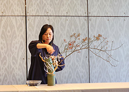 Ikebana DemonstrationAs a highlight of the Emerald Jubilee Sogetsu Exhibition, we staged two sessions of ikebana demonstrations on 2 November (Saturday) during which we invited eight local top level teaching grade Sogetsu teachers to demonstrate. They were Ms Sharon Chou, Ms Janet Choi, Mr HO in-shing, Mrs. Makiko Morange, Ms Tonie Yuen, Ms Aileen Yang, Ms Yuko Chiba and Ms Armanda Da Roza. Thank you for their kind support and awesome demonstrations which had attracted nearly 100 audience for each session. Grateful for very positive feedbacks from audiences and visitors regarding demonstrations and exhibition.