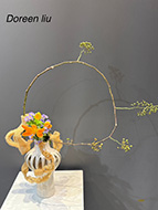 October Online SeminarTogether with the Tokyo HQ, HKSTA had organized an online seminar on October 18, 2023. Ms Hiromi Sugioka, Master Instructor of Sogetsu HQ was the demonstrator who had presented five arrangements, which were very informative, inspiring and beautiful. The participants learnt how to fix the heavy branches with fruits in Tsubo or in Suiban without kenzan by splitting, nailing or wiring. The seminar was attended by 43 members including 16 signed on zoom. What a wonderful afternoon we all spent.